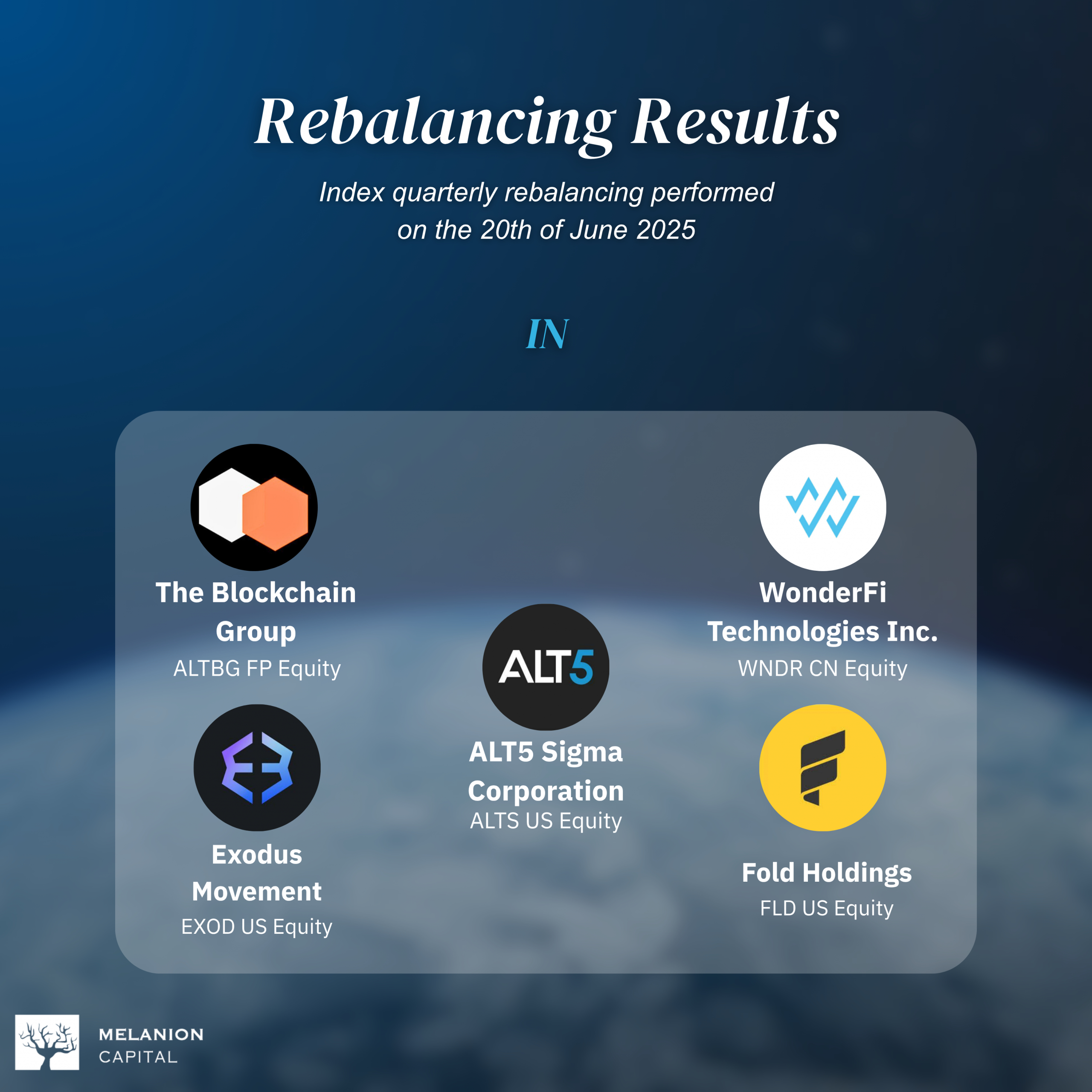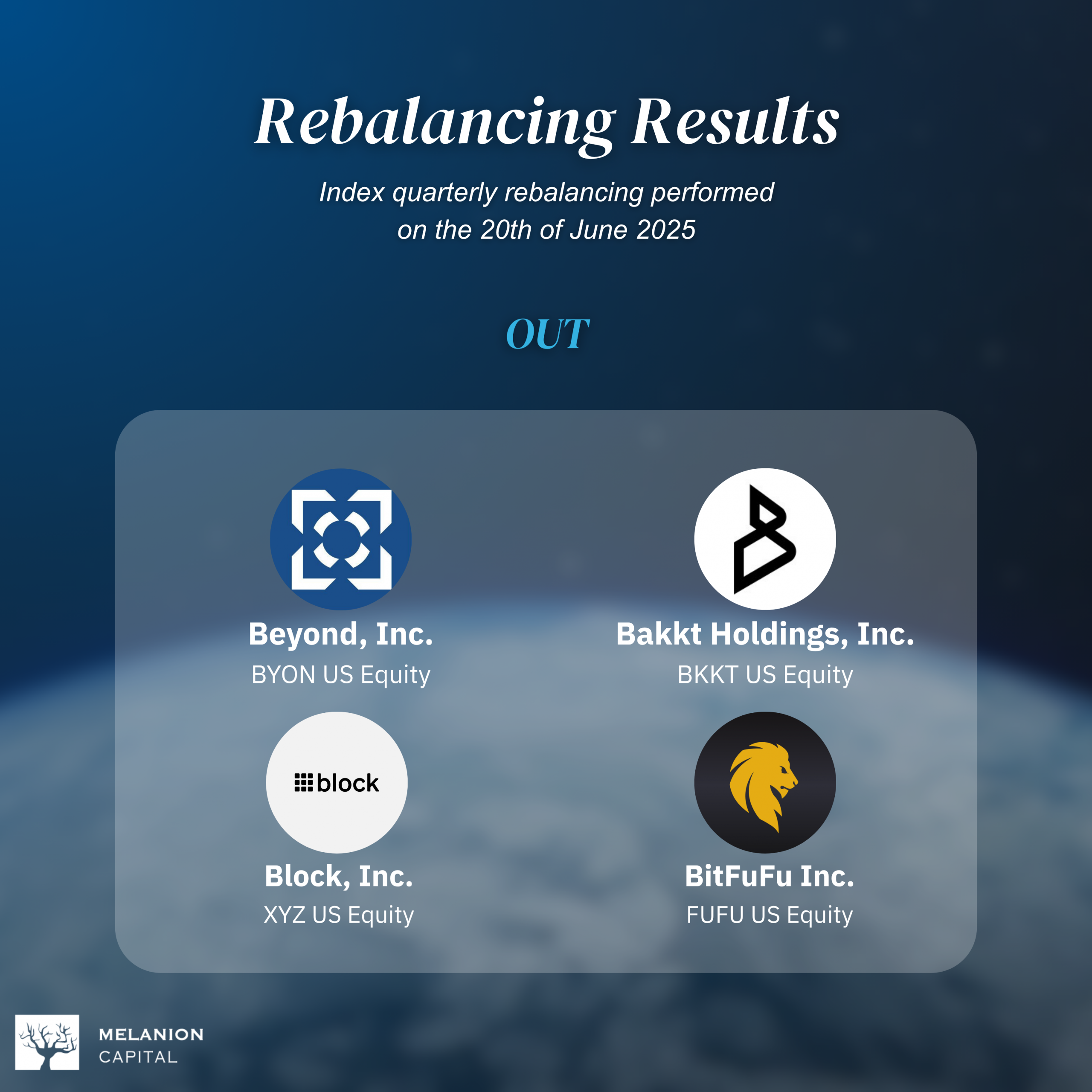 The Melanion Bitcoin Exposure Index underwent its quarterly rebalancing on June 20, 2025, continuing to evolve alongside the dynamic Bitcoin equities market. While the index maintains its core methodology—weighting constituents based on their beta with Bitcoin to maximize correlation—it also adapts to emerging trends. This quarter, several companies with significant Bitcoin treasury positions were added, reflecting the growing role of corporate Bitcoin holdings in the broader market.